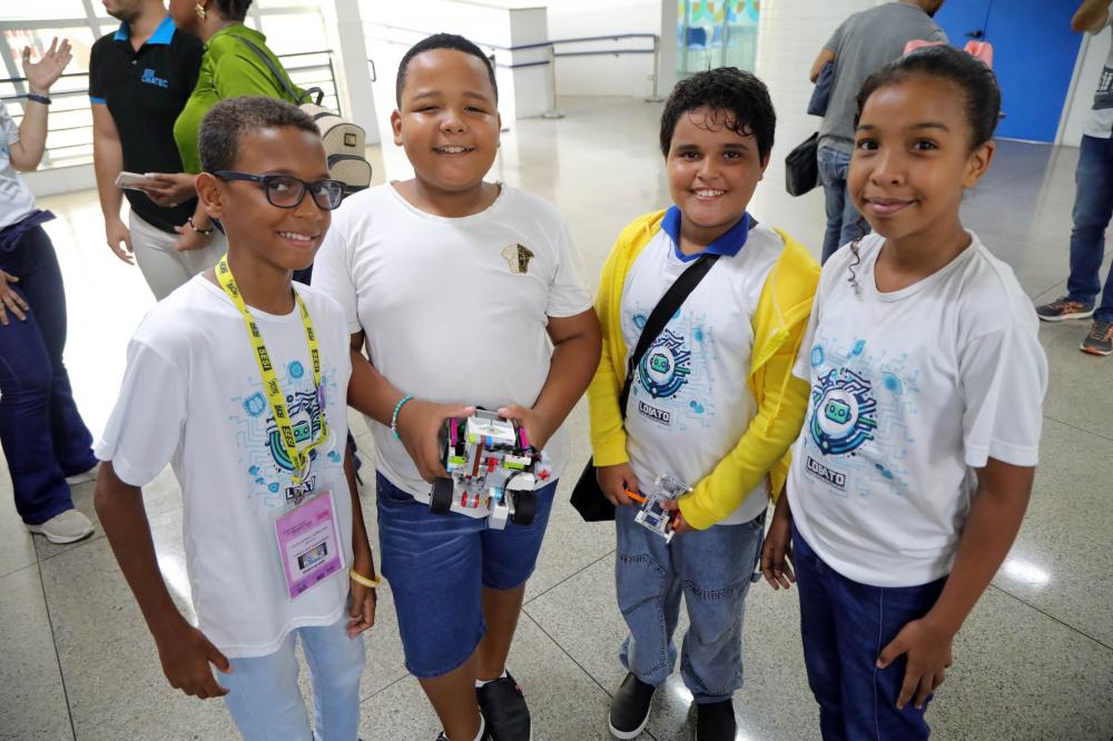 Miriam Pinheiro e Enzo Lima, de 10 anos, Diogo Ventura e Lucas Gabriel, de 11 anos, alunos do Centro Municipal de Educação Infantil (Cmei) Mario Altenfelder, localizado no bairro do Lobato, viajam na tarde desta terça-feira (27) para Brasília (DF), onde participam do Festival Sesi de Educação, o maior torneio de robótica educacional do país. A unidade de ensino é a única escola pública do Norte e Nordeste a participar do evento.