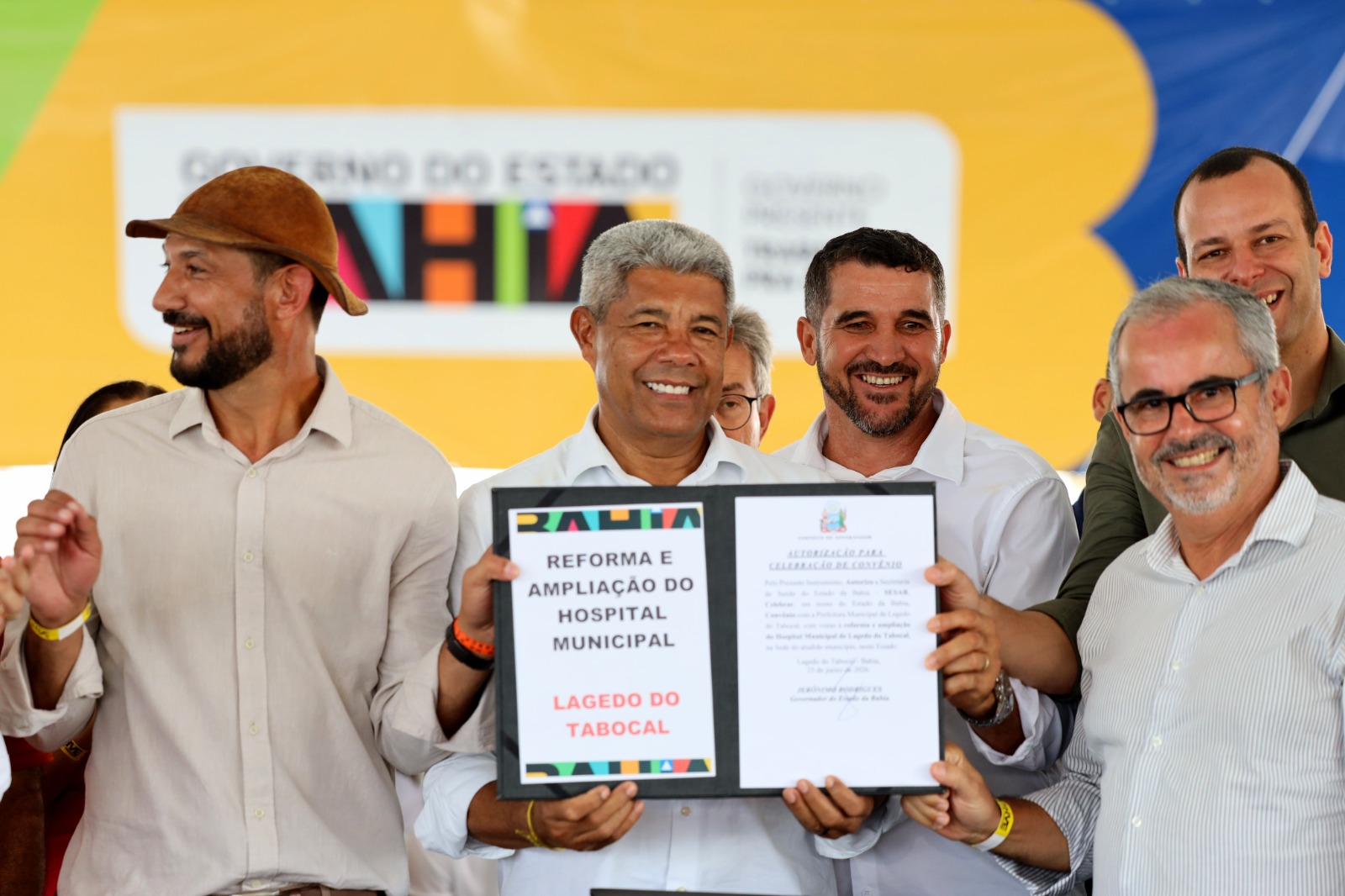 Outro ponto da agenda foi a autorização para celebração de convênio entre o Estado e o município para a requalificação e paisagismo da Avenida Aurélio de Assis e da Rua Quatro de Novembro, com investimento de R$ 7,4 milhões. Ainda em Lagedo do Tabocal, Jerônimo autorizou a implantação do sistema de água da Gameleira, Areão, Peixe, Roncador, São Roque, Santo Antônio e Fazenda Nova; do sistema de água da rua da Esperança e Povoado São Pedro em Lagedo do Tabocal. Também foi autorizada a reforma do estádio municipal e do galpão de corte e costura Belladona; além da obra de reforma e ampliação do mercado municipal; pavimentação asfáltica da sede ao Povoado Quilombola de Peroba e a reforma e ampliação do hospital municipal. A Sesab foi autorizada a proceder para a cessão de uma van TFD.