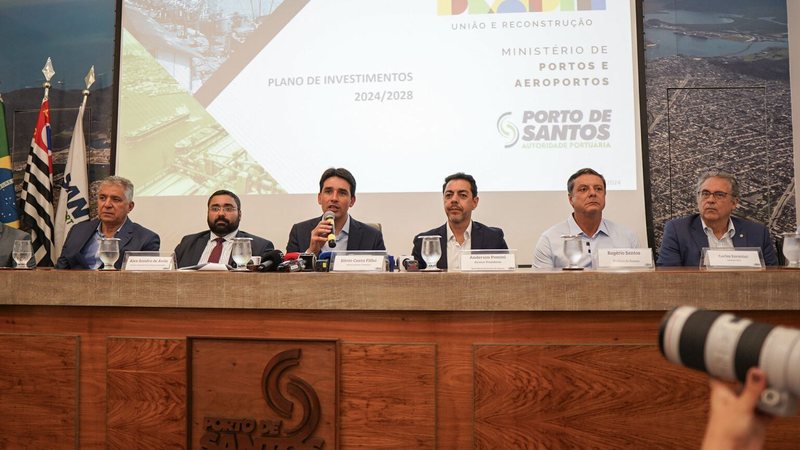 Fundamental para o escoamento de bens e produtos que abastecem o Brasil e boa parte do mundo e porta de entrada e saída de mercadorias, o Porto de Santos terá investimento de R$ 12,6 bilhões entre 2024 e 2028, o maior volume de recurso aplicado em obras de expansão e modernização do principal complexo portuário do hemisfério Sul. O anúncio do investimento, bem como os detalhes de cada melhoria prevista no porto, foi realizado nesta segunda-feira, 11 de março, pelo ministro de Porto e Aeroportos, Silvio Costa Filho.